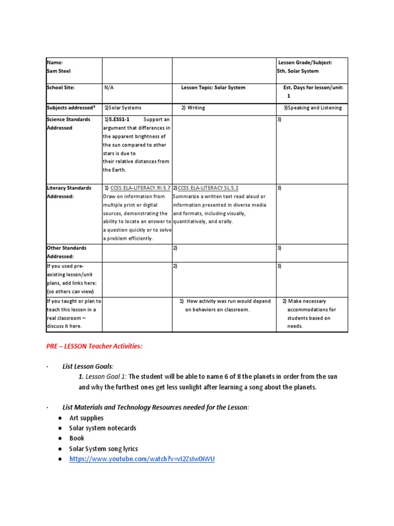 Our Solar System An Inventory Of The Solar System Free Write