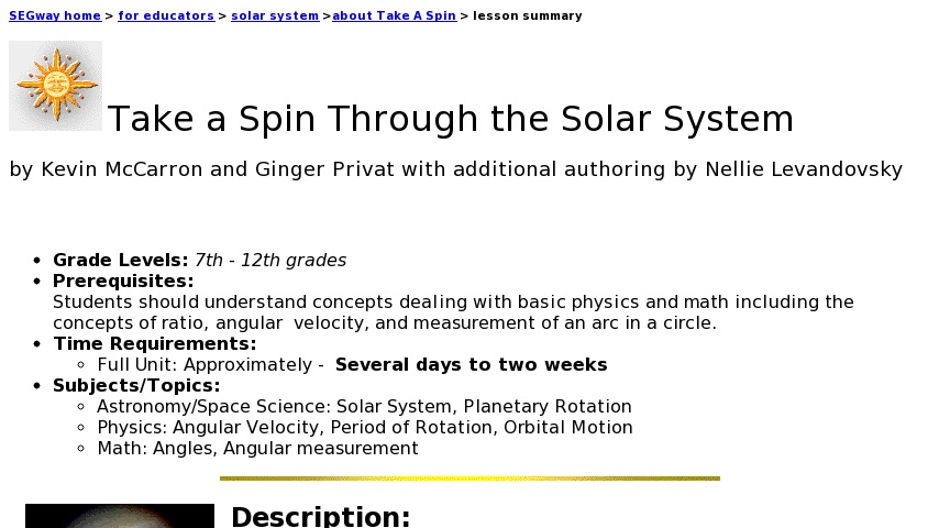 Take A Spin Through The Solar System Curriki